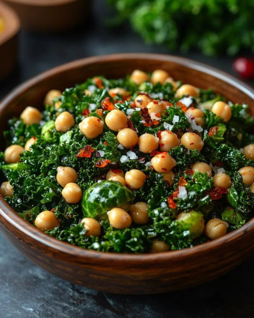 The magic of this salad lies in its balance of flavors and textures. Roasted Brussels sprouts bring a slight caramelized crunch, wilted kale adds depth, and chickpeas provide creamy richness. A well-crafted dressing of lemon juice, maple syrup, Dijon mustard, and smoked paprika enhances the flavors without overpowering the vegetables. The finishing touches—roasted sunflower seeds and dried cranberries—add texture, sweetness, and visual appeal.