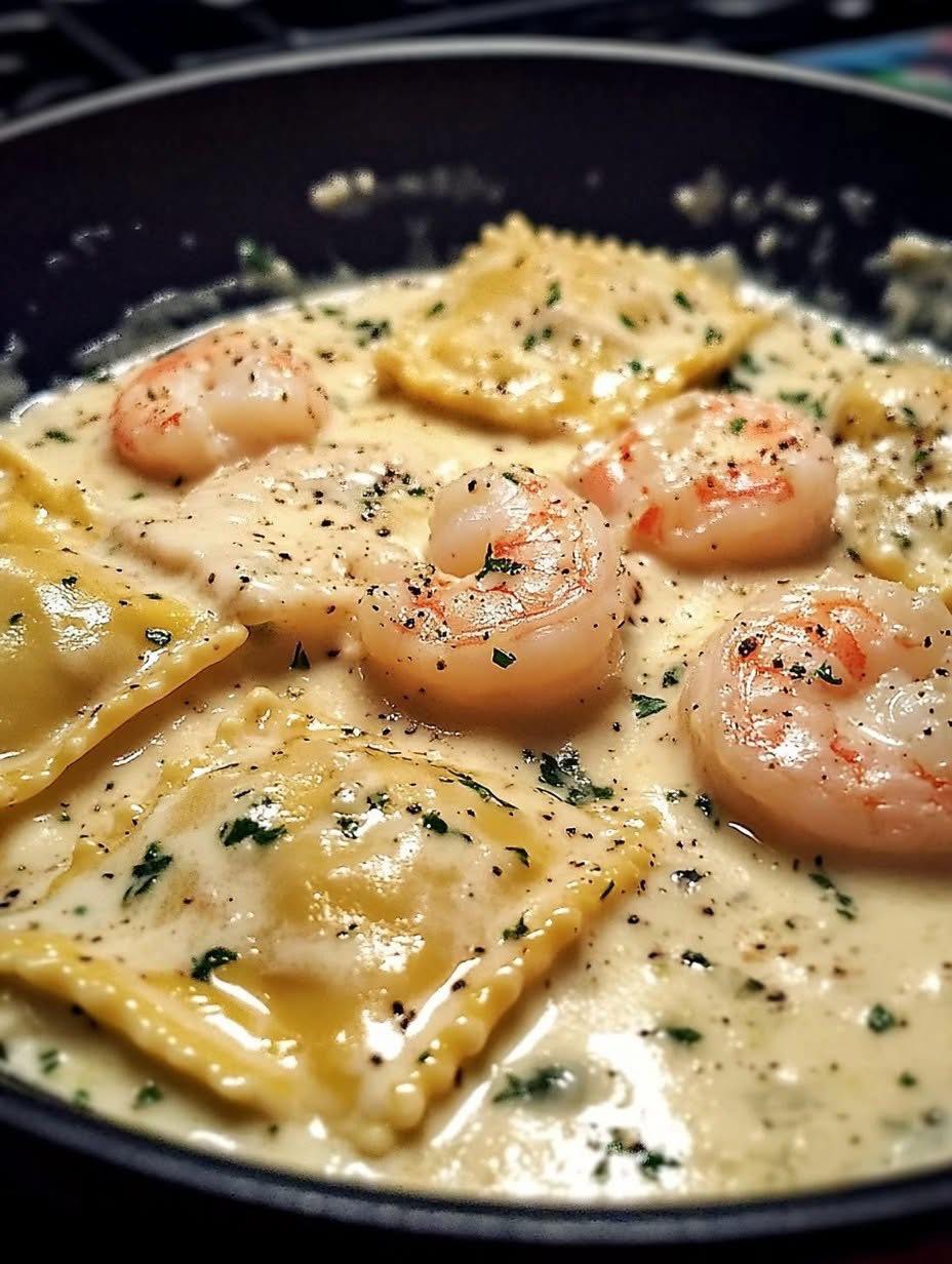 Creamy Shrimp Ravioli Skillet 🍤