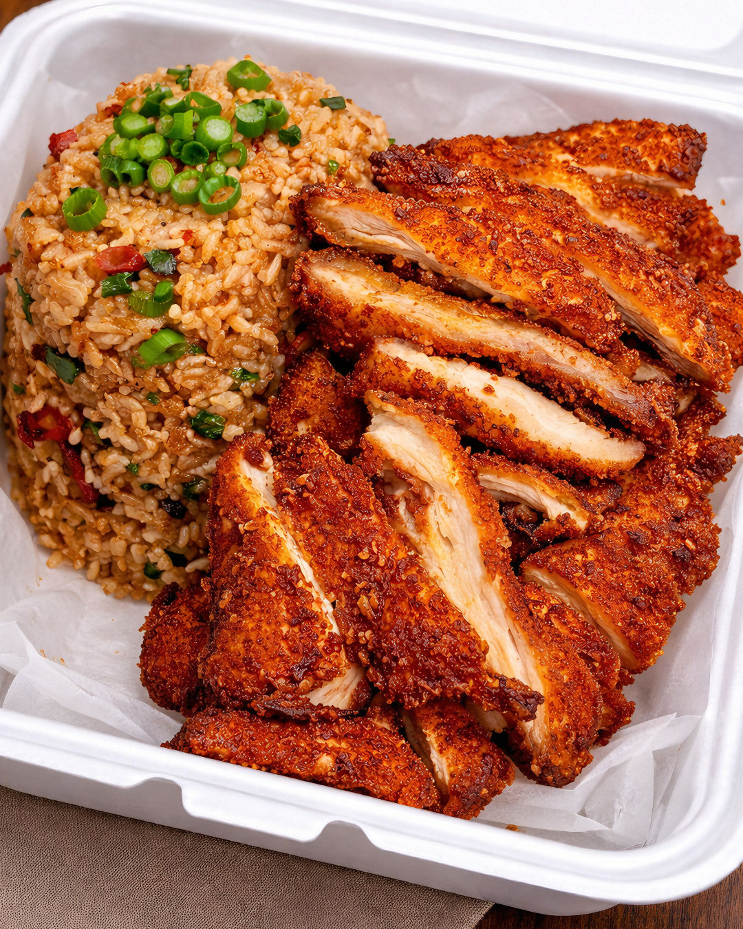 Crispy Spicy Chicken Served with Flavorful Fried Rice