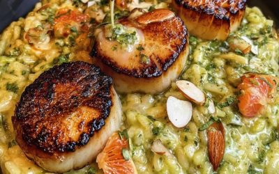 Seared Scallops with Creamy Pesto Risotto Introduction Imagine tender, golden-brown scallops perched atop a velvety, herbaceous risotto—the kind of dish…